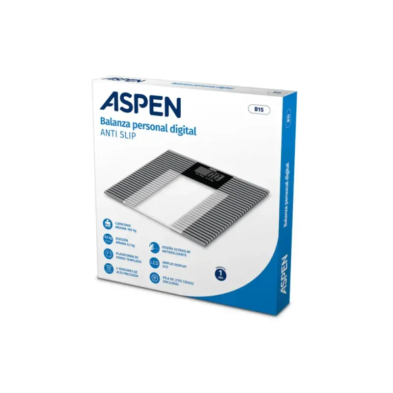 La balanza digital ASPEN B15 Anti-Slip es una excelente elección para quienes buscan exactitud, seguridad y un diseño sofisticado en el seguimiento cotidiano de su salud.