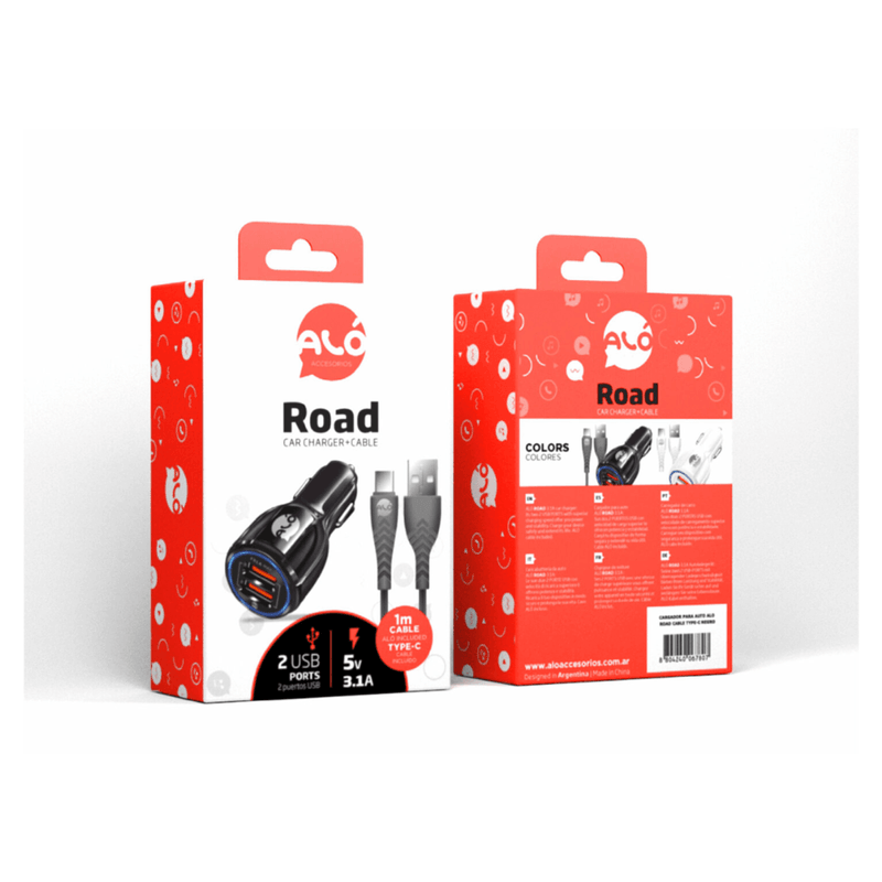 🚗 Cargador para Auto ALO Road con Cable TYPE-C Negro⚡