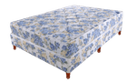 El sommier, fabricado en madera resistente, cuenta con 7 patas torneadas y lustradas con perno enroscado, recubierto con espuma de poliuretano y tela de algodón matelassé.