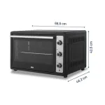 Su panel mecánico ofrece un manejo fácil e intuitivo, con timer de 0 a 60 minutos y temperatura regulable entre 100 °C y 250 °C, adaptándose a diferentes tipos de recetas.