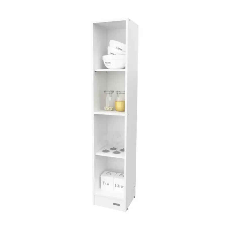 estantes abiertos y no incluir puertas ni cajones, brinda una organización simple y versátil para vajilla, frascos, utensilios o productos de limpieza.