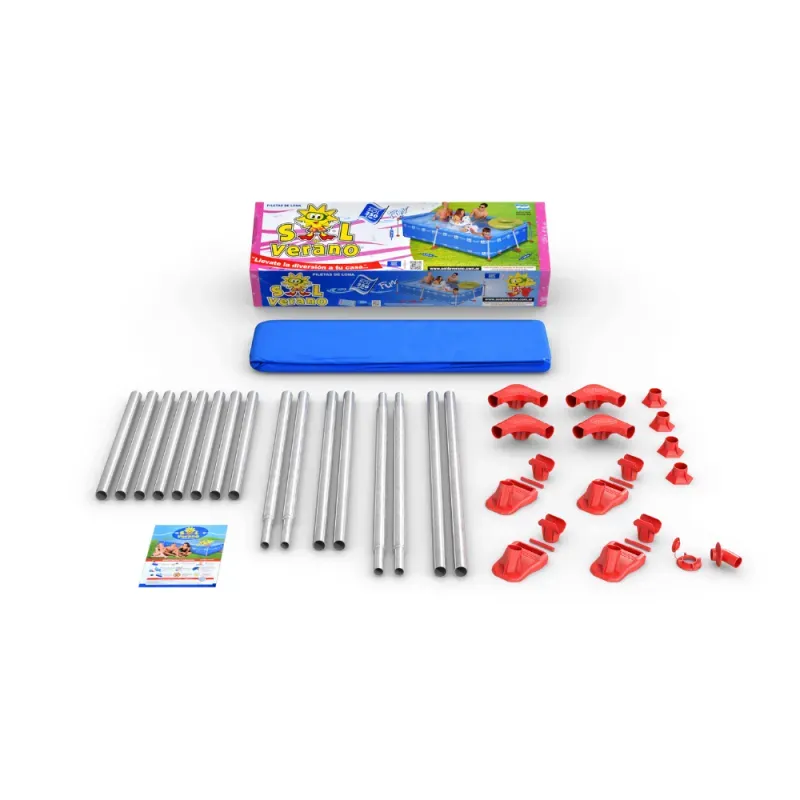 estabilidad y durabilidad, mientras que su formato rectangular permite aprovechar mejor el espacio disponible. Además, su armado es simple y rápido, ideal para quienes quieren tener la pileta lista en pocos minutos.
