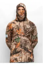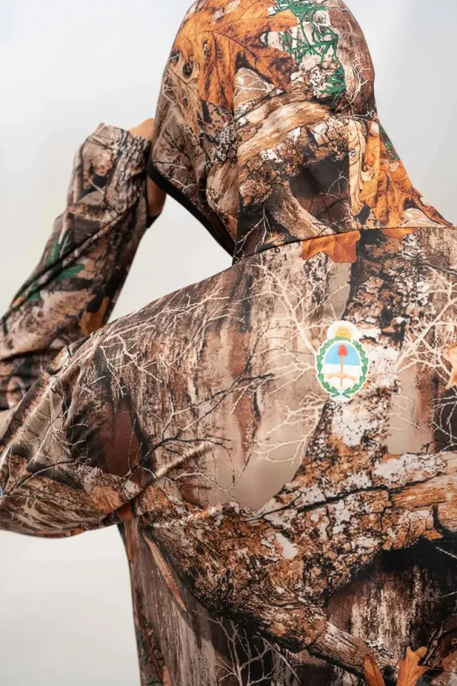 Remera técnica con capucha y tapaboca, confeccionada en poliéster 100% full print color. Su tecnología Hidrowick absorbe la humedad corporal, se seca rápido y ofrece alta protección UV, perfecta para actividades bajo el sol. ☀️💨
