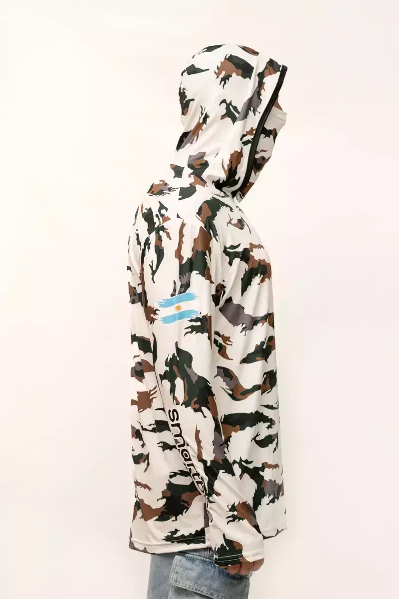 Remera Técnica L SMARTBEE Animal Blanca – Con Capucha y Tapaboca 🌞🧢