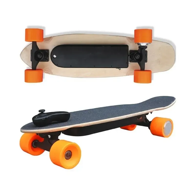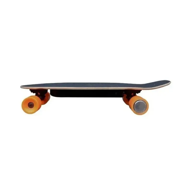Equipado con motor eléctrico simple, este skateboard ofrece una aceleración suave y controlada, ideal tanto para trayectos cortos como para paseos recreativos. Su estructura robusta brinda estabilidad y seguridad durante la conducción, permitiendo un manejo firme sobre superficies urbanas.