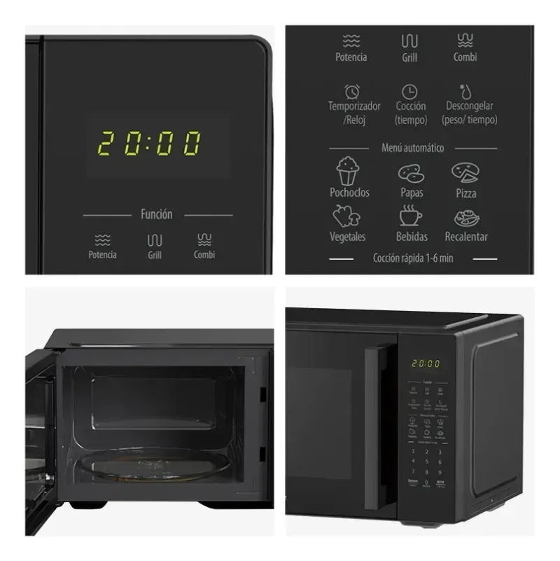 Su capacidad de 23 litros ofrece un equilibrio ideal entre tamaño compacto y buen espacio interno, adaptándose fácilmente a distintos ambientes de cocina. Las funciones preprogramadas simplifican la preparación de comidas y permiten obtener resultados consistentes con solo un toque.